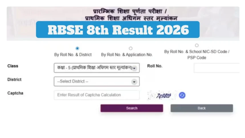 RBSE 8वीं का रिजल्ट 2026 – राजस्थान बोर्ड परीक्षा का स्कोर कैसे चेक करें? रोल नंबर और जन्मतिथि के माध्यम से मार्कशीट डाउनलोड करने का लिंक