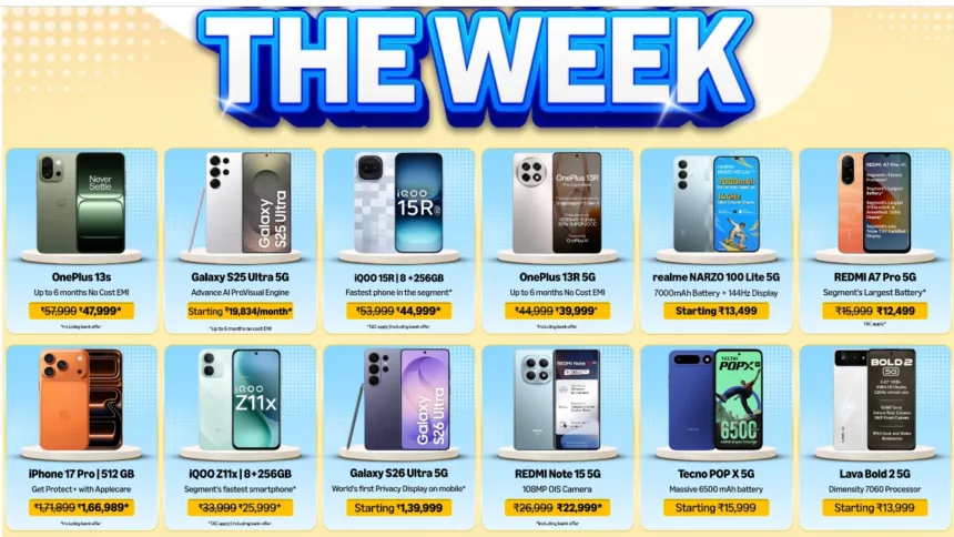 ये सभी ऑफर 26 अप्रैल से 3 मई, 2026 तक (या स्टॉक खत्म होने तक) मान्य हैं। ये “हफ़्ते के टॉप ऑफर” हैं, इसलिए इनकी मात्रा सीमित है – खासकर OnePlus 13R और Redmi Note 15 के लिए। अगर आपको कोई ऑफर पसंद आता है, तो रविवार तक इंतज़ार न करें।
