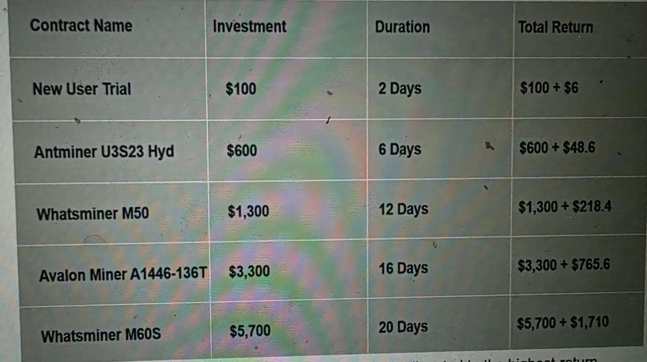 एक अनुबंध चुनें: $100 से शुरू होकर, स्पष्ट रिटर्न और नियंत्रणीय चक्रों के साथ कई लचीली योजनाएँ उपलब्ध हैं।