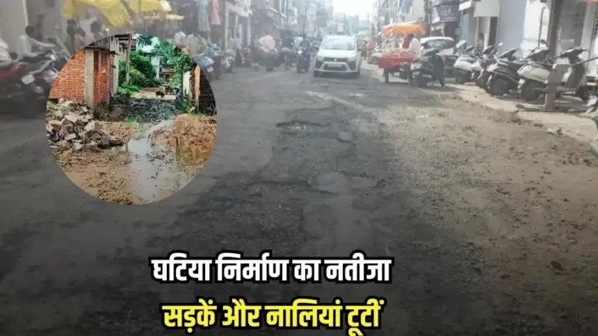 घटिया निर्माण का नतीजा – सड़कें और नालियां टूटीं, 15 हजार लोग परेशान