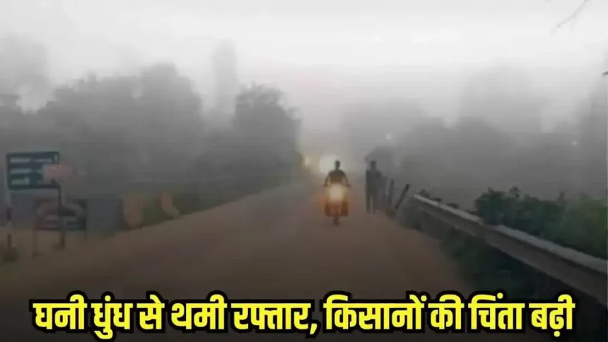 घनी धुंध से थमी रफ्तार, किसानों की चिंता बढ़ी
