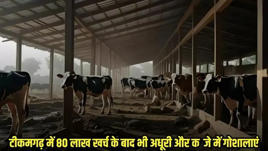 Tikamgarh News: जिले की कई ग्राम पंचायतों में गोशालाओं का निर्माण अधूरा है या उन पर अवैध कब्जा हो गया है। ग्राम रमपुरा में हवाई पट्टी के लिए स्वीकृत जमीन पर गोशाला बनाकर छोड़ दी गई, पहाड़ी खुर्द की गोशाला अधूरी है और बड़ौराघाट के सुनौरा खिरिया में गोशाला की जमीन पर खेती हो रही है। तीनों पर करीब 99 लाख में से लगभग 80 लाख रुपए खर्च हो चुके हैं, फिर भी गोवंश को आश्रय नहीं मिल रहा।