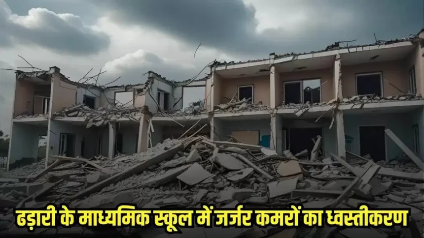 Chhatarpur News: ढड़ारी गांव के माध्यमिक स्कूल परिसर में लंबे समय से जर्जर हालत में पड़े कमरों को शुक्रवार को ध्वस्त कर दिया गया। यह कार्य सुबह 9 बजे शुरू होकर शाम 5 बजे तक चला। पुराने और कमजोर कमरों की संरचना इतनी खराब हो चुकी थी कि वे छात्रों और स्टाफ के लिए खतरा बन गए थे। सुरक्षा कारणों से लोक निर्माण विभाग ने इन कमरों को कंडम घोषित किया था।