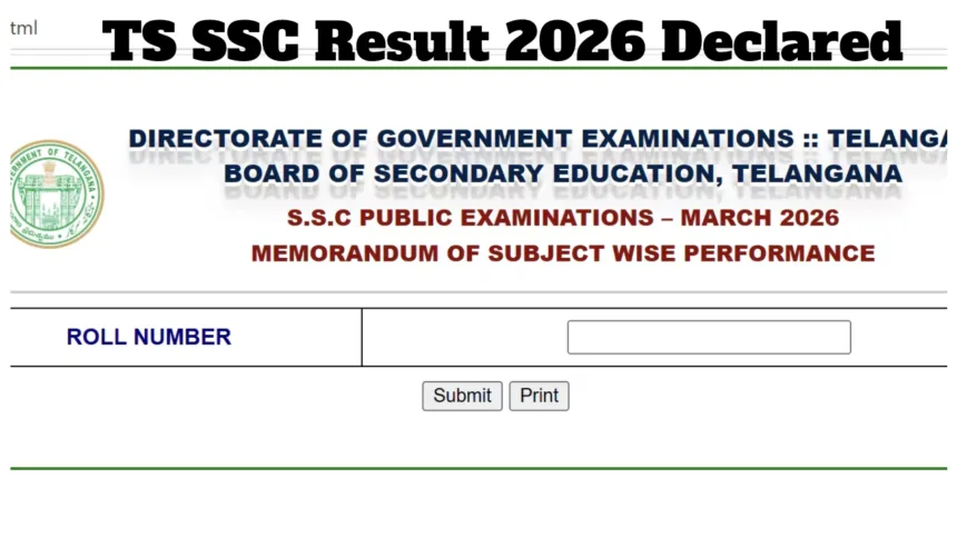 तेलंगाना माध्यमिक शिक्षा बोर्ड (टीएस एसएससी) 2026 का परिणाम घोषित: तेलंगाना माध्यमिक शिक्षा बोर्ड ने 2026 में आयोजित कक्षा 10वीं की परीक्षा के परिणाम जारी कर दिए हैं। इस वर्ष कुल 95.15% छात्र उत्तीर्ण हुए हैं। परीक्षा में शामिल हुए छात्र अब बोर्ड की आधिकारिक वेबसाइट results.bsetelangana.org पर अपना परिणाम देख सकते हैं। छात्रों को बस अपना वैध रोल नंबर दर्ज करना होगा।