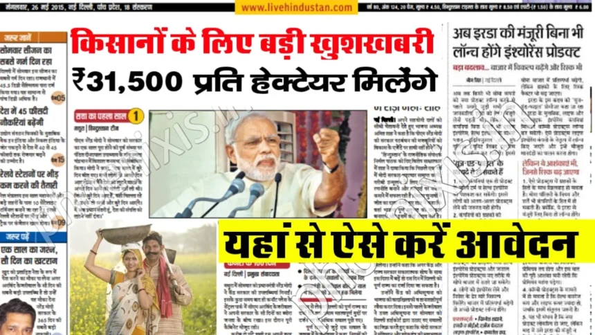 देश के लिए किसानों बल्ले-बल्ले, सभी को मिलेगा ₹31,500 प्रति हेक्टेयर, जानें आवेदन प्रक्रिया और किन लोगों को मिलेगा लाभ।
