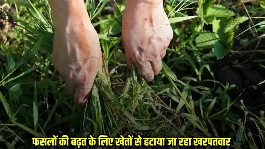 फसलों की बढ़त के लिए खेतों से हटाया जा रहा खरपतवार