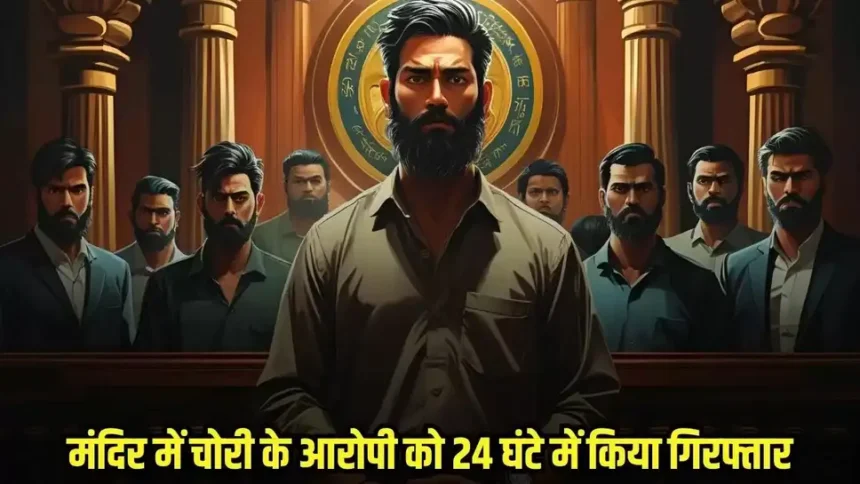 Chhatarpur News: छतरपुर में पुलिस ने सरवई थाना क्षेत्र के कछवारे मंदिर में हुई चोरी के आरोपी को 24 घंटे के भीतर गिरफ्तार कर चोरी की गई सामग्री बरामद की है। पुलिस ने बताया कि मंदिर में पीतल के पांच छोटे-बड़े घंटे चोरी हुए थे, जिनकी कीमत करीब 6,000 रुपए है।