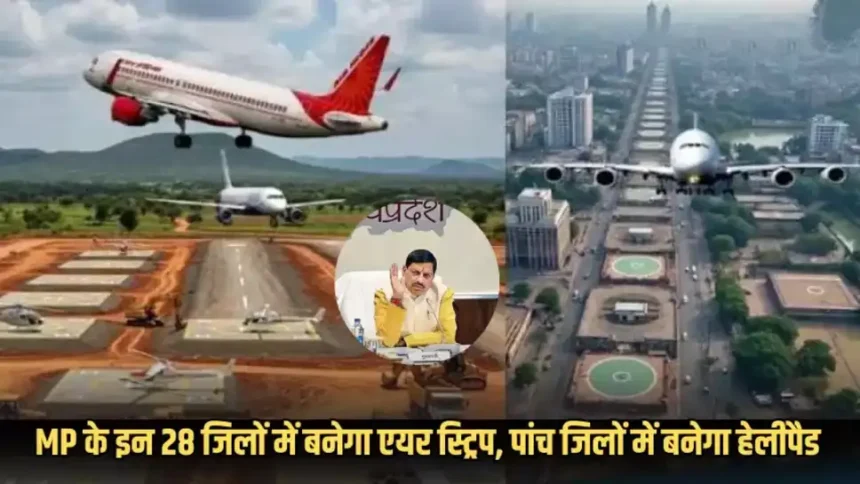 प्रदेश के कटनी, बैतूल, भिंड, अनूपपुर, मुरैना, बुरहानपुर, टीकमगढ़, छतरपुर, धार, डिंडौरी, हरदा, नर्मदापुरम, देवास, सीहोर, अलीराजपुर, आगर मालवा, रायसेन, राजगढ़, शाजापुर, विदिशा, श्योपुर, अशोकनगर, नरसिंहपुर, बड़वानी, पांढुर्णा, निवाड़ी, मैहर और मऊगंज जिलों में हवाई पट्टी यानी एयरस्ट्रिप नहीं है।