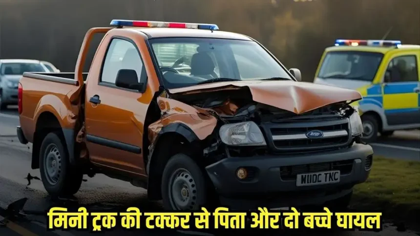 मिनी ट्रक की टक्कर से पिता और दो बच्चे घायल