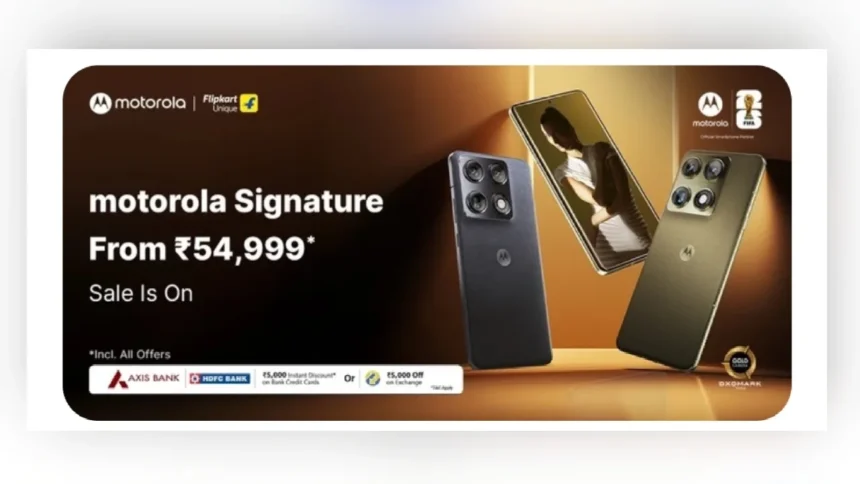 मोटोरोला सिग्नेचर सेल: अगर आप लंबे समय से प्रीमियम मोटोरोला सिग्नेचर स्मार्टफोन खरीदने का सपना देख रहे हैं, तो अब आपकी इच्छा पूरी होने वाली है। यह हैंडसेट 512GB स्टोरेज, 50MP कैमरा और 5200mAh बैटरी के साथ उपलब्ध है। इस फोन की सेल ऑनलाइन शॉपिंग वेबसाइट फ्लिपकार्ट पर दोपहर 12 बजे से शुरू हो गई है। आप इस पर 15,000 रुपये से अधिक की छूट पा सकते हैं। आइए जानते हैं इसके सेल ऑफर्स और फीचर्स के बारे में।