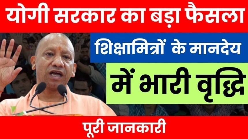 उत्तर प्रदेश की योगी सरकार ने एक बड़ा फैसला लेते हुए शिक्षामित्रों के मानदेय में उल्लेखनीय बढ़ोतरी की घोषणा की है। यह ऐलान लंबे समय से अपनी मांगें रख रहे शिक्षामित्रों के लिए राहत की खबर है। सरकार के अनुसार, नए वेतनमान के लागू होने के बाद शिक्षामित्रों को पहले से अधिक सम्मानजनक आर्थिक सहायता मिलेगी और उनका भविष्य भी सुरक्षित होगा।