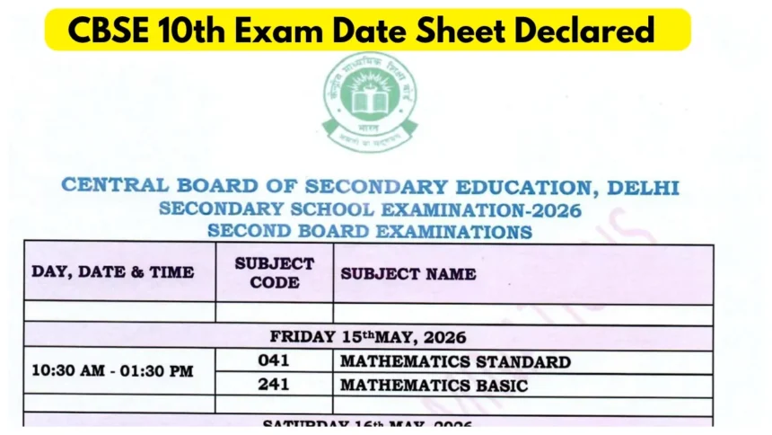 सीबीएसई 10वीं परीक्षा तिथि पत्र: केंद्रीय माध्यमिक शिक्षा बोर्ड (सीबीएसई) ने कक्षा 10 की ‘द्वितीय बोर्ड परीक्षा-2026’ की तिथि पत्र जारी कर दी है। सीबीएसई बोर्ड ने हाल ही में कक्षा 10 के परिणाम घोषित किए थे। बोर्ड द्वारा दी गई जानकारी के अनुसार, द्वितीय बोर्ड परीक्षाएं 15 मई, 2026 से शुरू होकर 21 मई, 2026 तक चलेंगी।