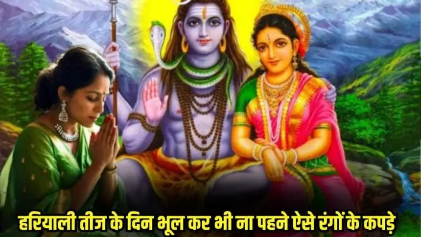 इस साल हरियाली तीज का त्योहार 27 जुलाई को मनाया जाएगा। इस त्यौहार के दिन सोलह सिंगार करने का विशेष महत्व है। महिलाएं सुहाग से जुड़े हर चीज पहनती हैं और भगवान शिव की पूजा करती है। हरियाली तीज के दिन कुछ रंगों को वर्जित माना गया है और ऐसी रंगो के कपड़े भूलकर भी नहीं पहनना चाहिए ।