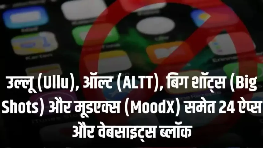 केंद्र सरकार ने आपतीजनक कंटेंट दिखाने वाले कई पॉपुलर एप्लीकेशन पर बड़ी कार्रवाई की, सूचना और प्रसारण मंत्रालय ने उल्लू, आल्ट, बिग शॉटस, और मूड एक्स समेत 24 और कुछ वेबसाइटों को बंद करने के आदेश दिए हैं।