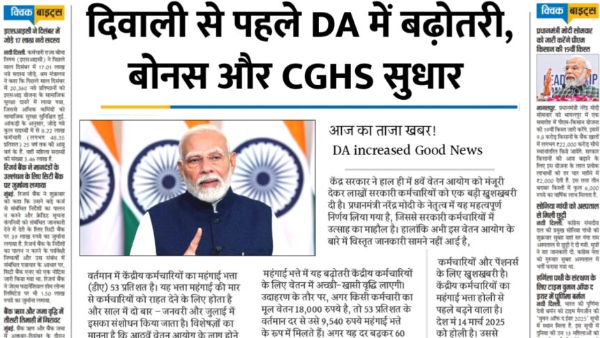 8th Pay Commission:दिवाली से पहले कर्मचारियों के लिए 3 बड़ी खुशखबरी DA में बढ़ोतरी, बोनस और CGHS सुधार