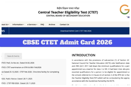 सीबीएसई सीटीईटी एडमिट कार्ड 2026: केंद्रीय माध्यमिक शिक्षा बोर्ड (सीबीएसई) किसी भी…