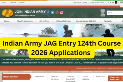 भारतीय सेना में जैज गार्ड भर्ती के 124वें कोर्स 2026 के लिए आवेदन आमंत्रित हैं: विधि स्नातकों के लिए आवेदन खुले हैं। आवेदन करने के लिए joinindianarmy.nic.in पर जाएं।