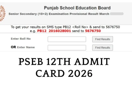 पंजाब बोर्ड कक्षा 12 परीक्षा 2026 का एडमिट कार्ड अब आधिकारिक वेबसाइट pseb.ac.in पर उपलब्ध है।