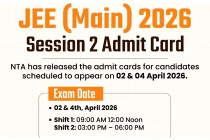 JEE Main 2026 सत्र 2 के एडमिट कार्ड जारी: राष्ट्रीय परीक्षण एजेंसी…