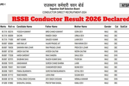 RSSB कंडक्टर रिजल्ट 2026: राजस्थान स्टाफ सिलेक्शन बोर्ड (RSSB) ने कंडक्टर परीक्षा…