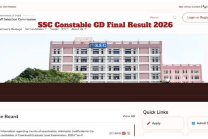 एसएससी कांस्टेबल जीडी फाइनल रिजल्ट 2026: कर्मचारी चयन आयोग (एसएससी) द्वारा आयोजित…