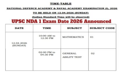 UPSC NDA 1 2026 परीक्षा – 12 अप्रैल को होने वाली परीक्षा की तिथि और समय सारिणी घोषित; 394 रिक्तियों का विवरण देखें