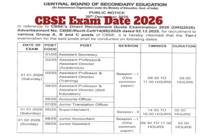सीबीएसई परीक्षा तिथि 2026: सीबीएसई ग्रुप ए, बी और सी भर्ती परीक्षाओं…