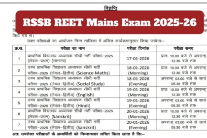 RSSB REET मुख्य परीक्षा 2025-26 – राजस्थान शिक्षक परीक्षा का पूरा शेड्यूल rssb.rajasthan.gov.in पर देखें