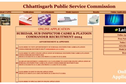 छत्तीसगढ़ लोक सेवा आयोग (CGPSC) ने सूबेदार, सब इंस्पेक्टर और प्लाटून कमांडर…