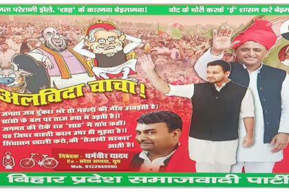 बिहार चुनाव 2025 – 14 नवंबर से पहले समाजवादी पार्टी ने ‘अलविदा चाचा…’ पोस्टर के साथ नीतीश कुमार का मजाक उड़ाया