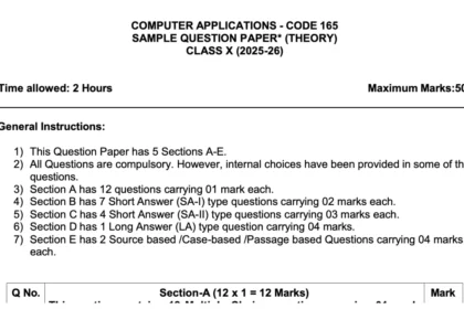 सीबीएसई बोर्ड परीक्षा 2026 – कक्षा 10 कंप्यूटर एप्लीकेशन सैंपल पेपर 2026 पीडीएफ डाउनलोड करें