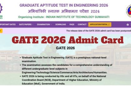 GATE 2026 का एडमिट कार्ड – IIT गुवाहाटी का हॉल टिकट लिंक जल्द ही gate2026.iitg.ac.in पर उपलब्ध होगा।
