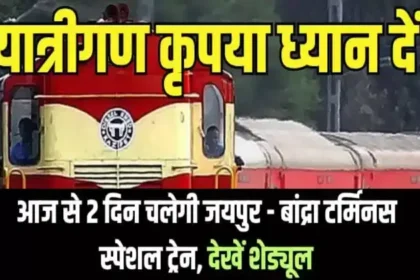 Ratlam Railway Mandal: यात्रीगण कृपया ध्यान दें! आज से 2 दिन चलेगी जयपुर – बांद्रा टर्मिनस स्पेशल ट्रेन, देखें शेड्यूल