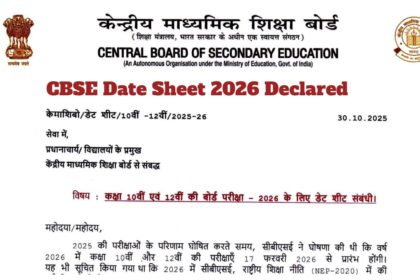 सीबीएसई बोर्ड परीक्षा 2026 डेट शीट:- केंद्रीय माध्यमिक शिक्षा बोर्ड ने सीबीएसई…