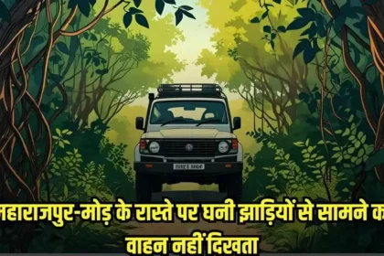 महाराजपुर-मोड़ के रास्ते पर घनी झाड़ियों से सामने का वाहन नहीं दिखता, दुर्घटना का खतरा