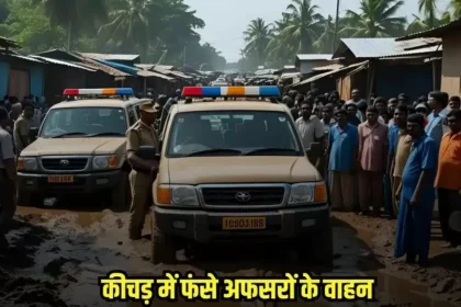 कीचड़ में फंसे अफसरों के वाहन, कॉलोनीवासियों ने कलेक्टर को घेरा