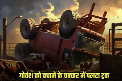 गोवंश को बचाने के चक्कर में पलटा ट्रक, बड़ा हादसा टला