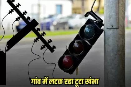 गांव में लटक रहा टूटा खंभा, हादसे की आशंका बढ़ी