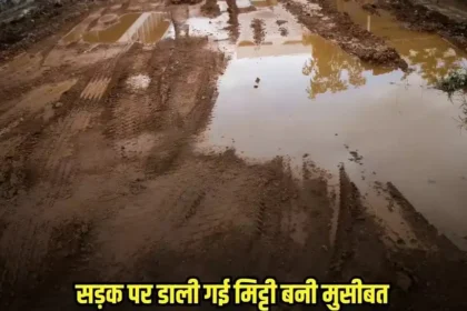 सड़क पर डाली गई मिट्टी बनी मुसीबत, जेसीबी से हटवानी पड़ी