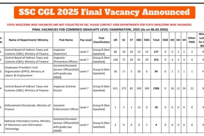 एसएससी सीजीएल 2025 की अंतिम रिक्तियों की घोषणा – श्रेणीवार पीडीएफ डाउनलोड करने का तरीका यहां देखें (ssc.gov.in)