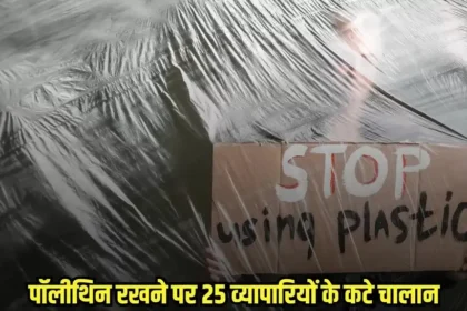 पॉलीथिन रखने पर 25 व्यापारियों के कटे चालान, जुर्माना वसूला गया