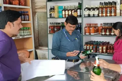 खाद्य सुरक्षा अधिकारी द्वारा सज्जन मिल रोड रतलाम स्थित शराब की दुकान लक्ष्मी ट्रेडिंग कंपनी का निरीक्षण
