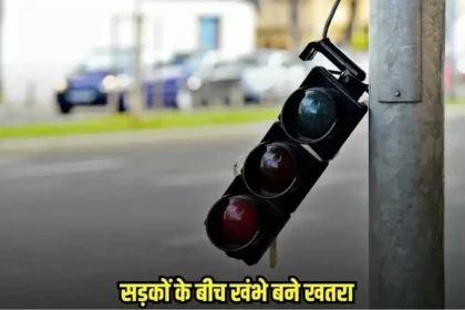 सड़कों के बीच खंभे बने खतरा, शिफ्टिंग में लापरवाही से बढ़ा हादसे का खतरा