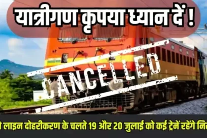 Train Cancelled Update: यात्रीगण कृपया ध्यान दें ! रेलवे लाइन दोहरीकरण के चलते 19 और 20 जुलाई को कई ट्रेनें रहेंगे निरस्त