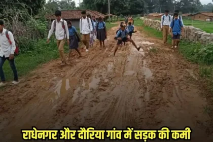 राधेनगर और दौरिया गांव में सड़क की कमी, कीचड़ से स्कूल जाते बच्चे
