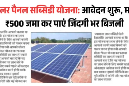 सोलर पैनल सब्सिडी योजना: आवेदन शुरू, मात्र ₹500 जमा कर पाएं जिंदगी भर बिजली Solar Panel Subsidy Yojana