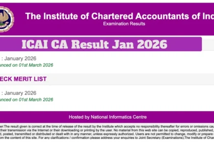 ICAI CA परिणाम जनवरी 2026: भारतीय चार्टर्ड अकाउंटेंट्स संस्थान (ICAI) चार्टर्ड अकाउंटेंट…