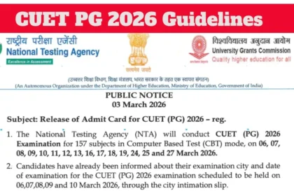 CUET PG 2026 – 7-10 मार्च सत्रों के लिए एडमिट कार्ड exams.nta.nic.in से डाउनलोड करें, दिशानिर्देश देखें