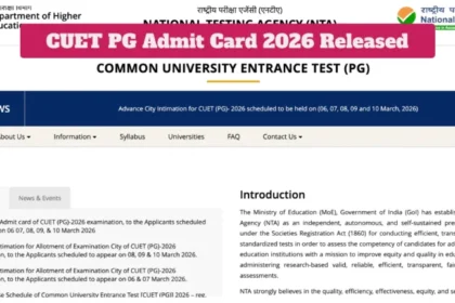 CUET PG 2026 का एडमिट कार्ड जारी: राष्ट्रीय परीक्षण एजेंसी (NTA) ने…