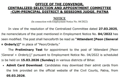 बिहार जिला न्यायालय चपरासी 2026 – पटना सिविल कोर्ट परीक्षा 15 मार्च को; विवरण देखें